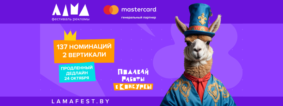 В этом году октябрь для представителей индустрии коммуникаций, маркетинга и рекламы Беларуси обещает быть особенно ярким! Финальный дедлайн приема конкурсных проектов на Фестиваль рекламы ЛАМА – 24 октября, и у тех, кто создает яркие идеи, есть еще немного времени, чтобы зарядиться вдохновением, завершить свои кейсы и заявить о них широкой профессиональной аудитории.
