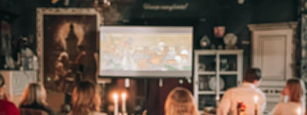 В уютном пространстве Мастацкага дома Угрыновіч по вечерам зажигается свет кинопроектора. В ноября здесь пройдут киновечера, где зрителей ждут легендарные киноленты. Чтобы попасть на кинопоказ, необходимо записаться по номеру +375296777831, а билет – депозит в кофейне на сумму 20 BYN с человека.