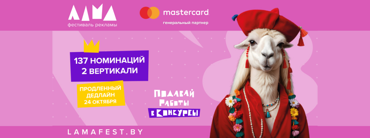 Фестиваль рекламы ЛАМА продлевает финальный дедлайн приема конкурсных проектов до 24 октября! У представителей индустрии коммуникаций, маркетинга и рекламы Беларуси есть еще немного времени, чтобы заявить о своих идеях широкой профессиональной аудитории, привлечь внимание брендов и партнеров, а также попасть в Рейтинги креативности.