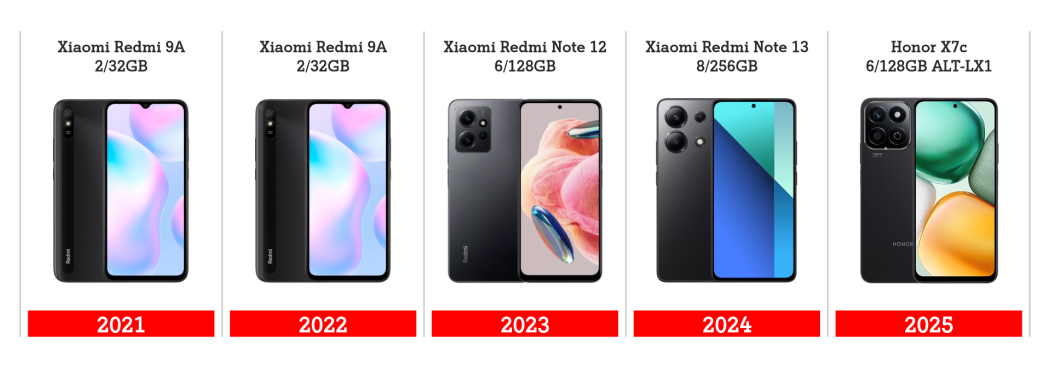 Топ-10 по итогам 2025 года удивляет контрастами: на первых трех позициях демократичные «одноклассники» HONOR X7c (1 место) и Xiaomi Redmi Note 14 (3 место) конкурируют с Apple iPhone 15 (2 место).