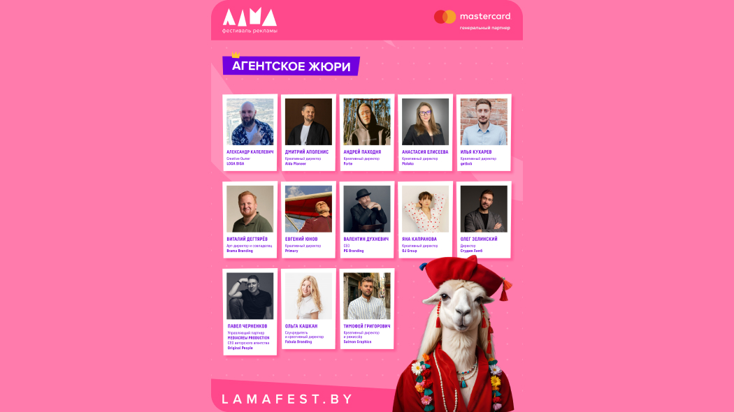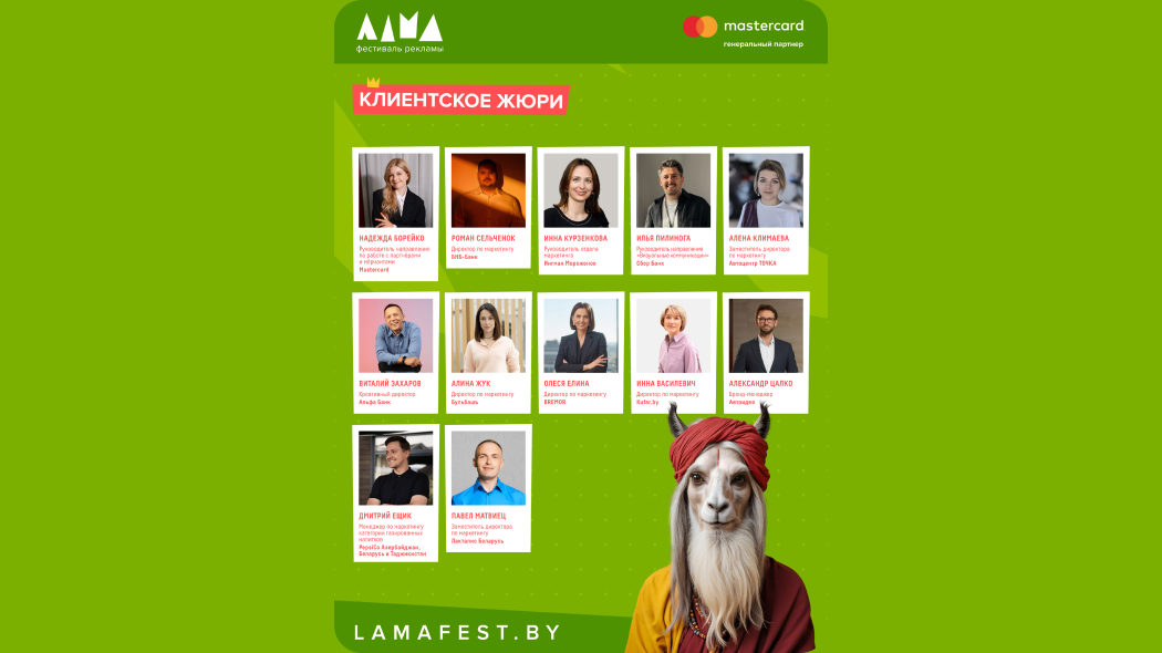 Фестиваль рекламы ЛАМА– одно из ярчайших событий индустрии коммуникаций Беларуси, место, где встречаются идеи, реализованные брендами и агентствами как в Беларуси, так и далеко за ее пределами, – объявляет составжюри!