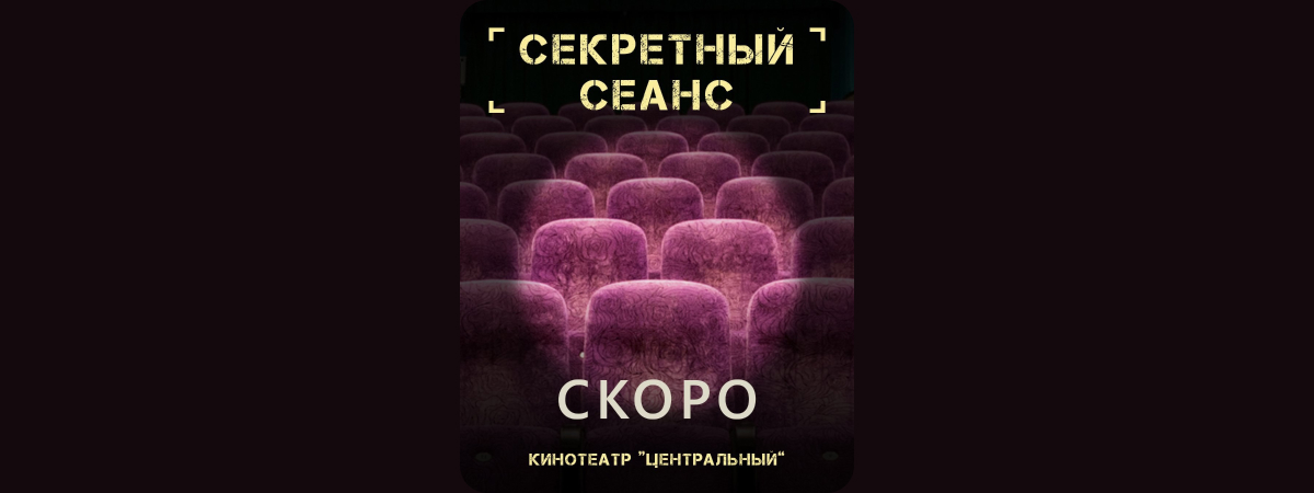 В кинотеатре «Центральный» стартует новая серия необычных показов под названием «Секретные сеансы». Зрителей ждут фильмы, названия которых остаются тайной до самого момента начала показа, будет известна только тематика. Тематика будет изменяться раз в месяц.