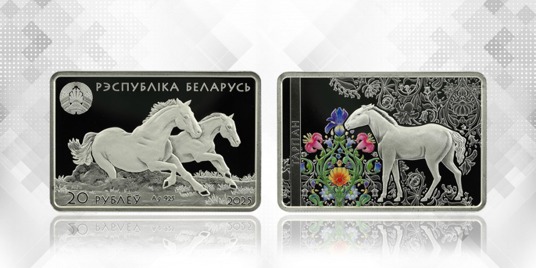 Номинал 20 рублей, масса 33,63 г, овальная форма 45×30,1 мм, качество «пруф с цифровой печатью». Реверс показывает тарпана — вымершего дикого предка лошадей — в окружении редких растений Налибокской пущи из Красной книги. Тираж — 2000 штук, проба 925.