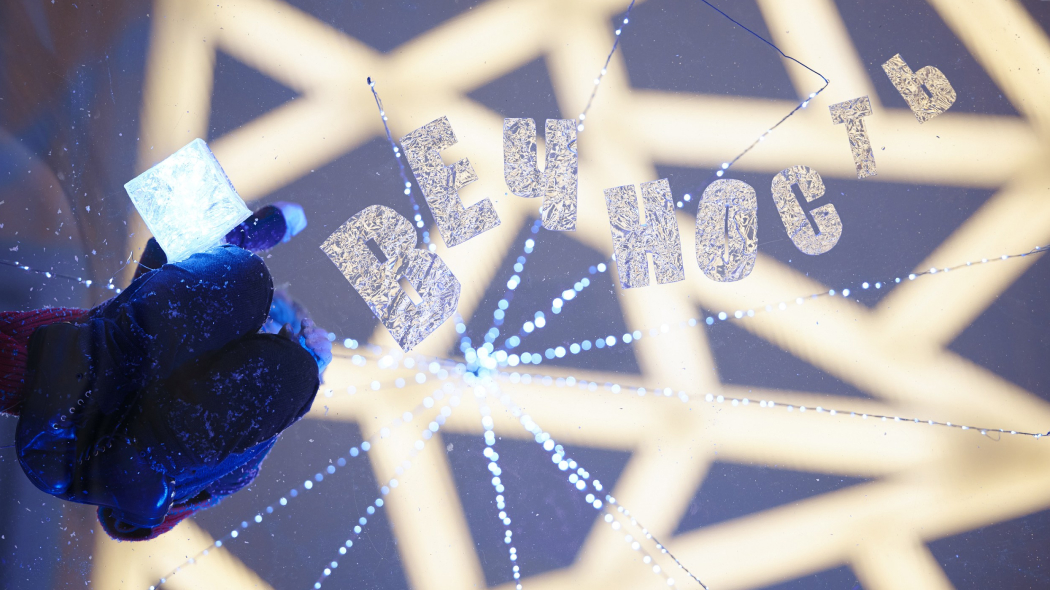 Центром волшебства стала грандиозная композиция. Здесь восседает на ледяном троне величественная Снежная Королева. Рядом с ней замер заколдованный Кай, старательно складывающий ледяные буквы в слово «ВЕЧНОСТЬ». Напротив — разбитое зеркало тролля, в которое буквально врывается отважная Герда на могучем олене. В руке девочки горит фонарик, шлейф теплых огней от которого пронизывает все пространство — зримое воплощение добра, способного растопить даже самое холодное сердце.