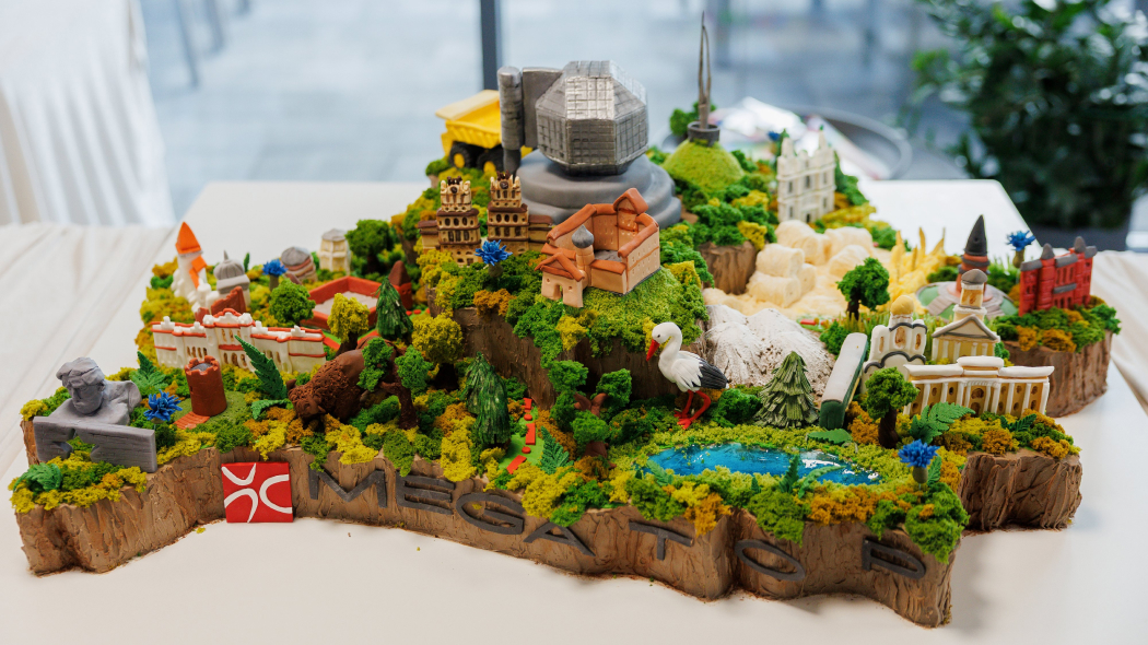 Группа компаний Megatop создала метровый торт-шедевр в виде детальной карты Беларуси. На нем нашли отражение символы страны, в том числе зубры, аисты и карьерные самосвалы. В процессе использованы элементы молекулярной кухни.