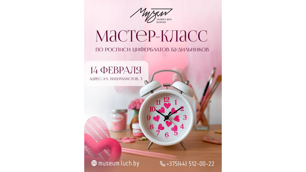 14 февраля Музей часового дела Беларуси приглашает пары на романтичный мастер‑класс по росписи циферблатов будильников — необычную идею для свидания, где вы создадите свой собственный символ времени.